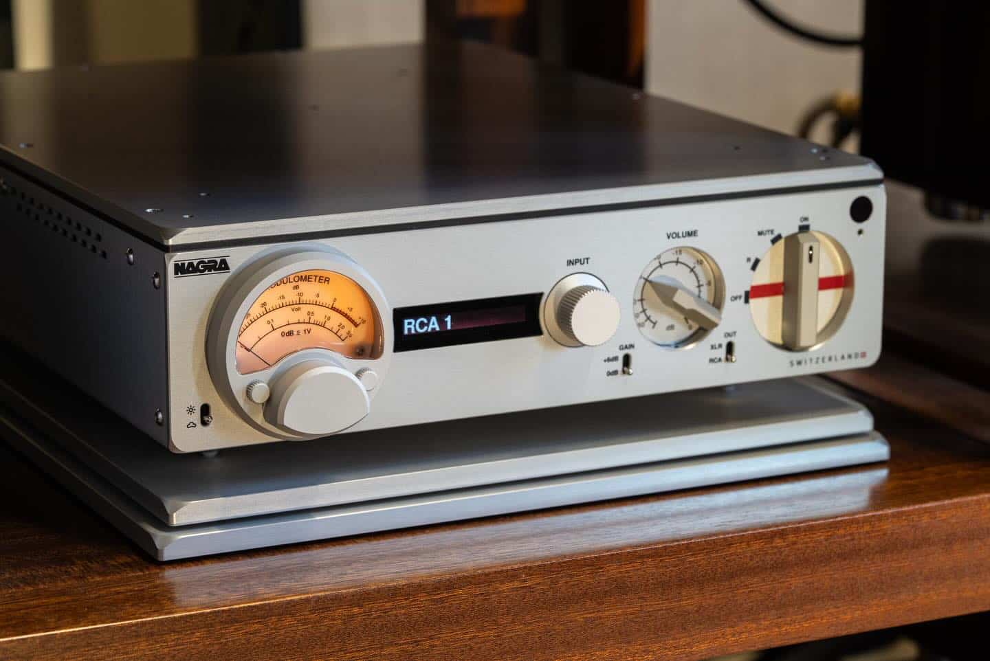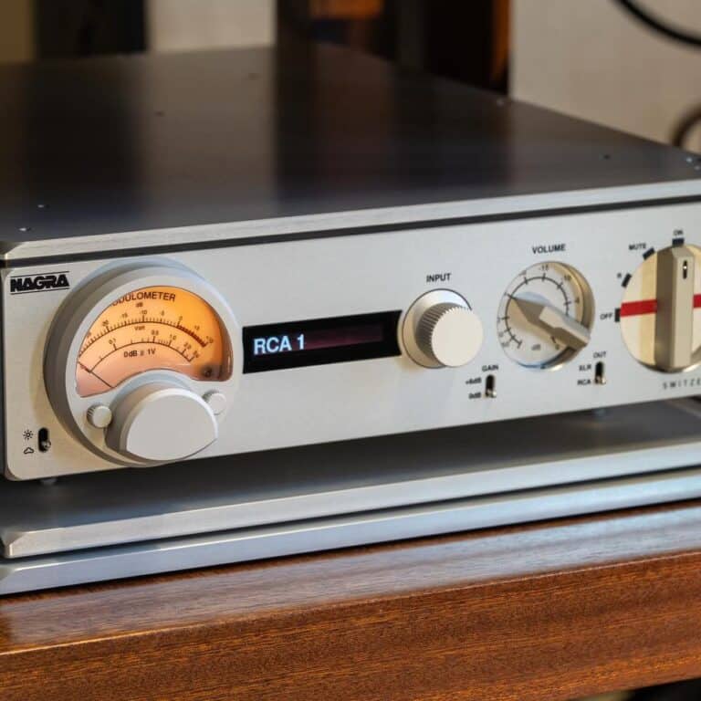 In 1998, Nagra officially entered the high-end Hi-Fi world with the PL-P, its first home-oriented product: a battery-powered tube preamplifier with phono stage, featuring the legendary Modulometer™ and rotary selector. It quickly became an icon.